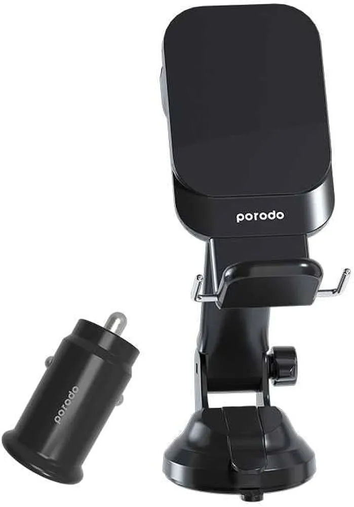 پایه ی نگهدارنده و شارژر وایرلس Porodo مدل 3 in 1 Magsafe Car Mount + QC3.0 Car Charger