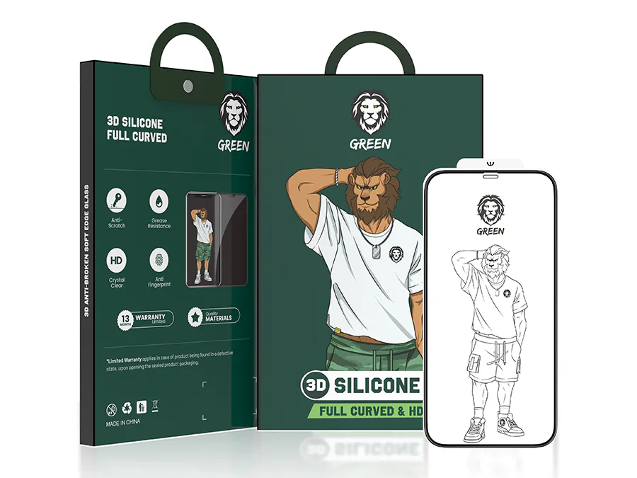 گلس GREEN سیلیکون سه بعدی + شیشه HD مناسب iPhone11Pro/X/XS