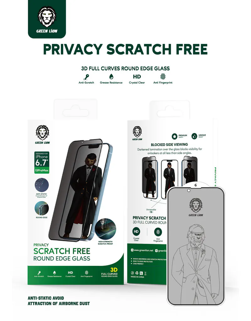 GREEN 3D Privacy Scratch Free Round Edge Glass (iPhone13ProMax)