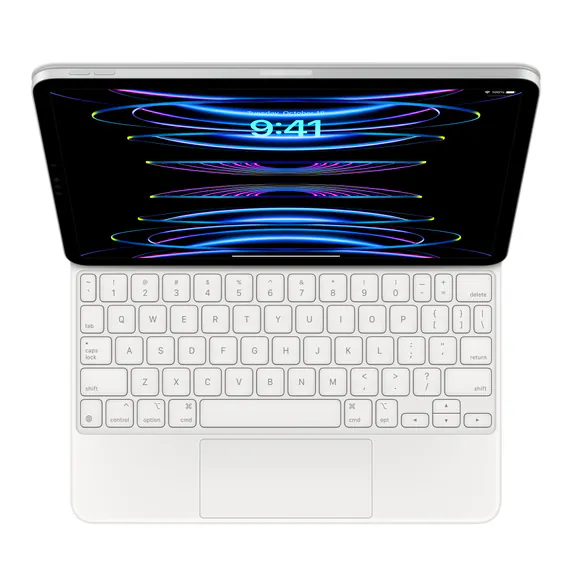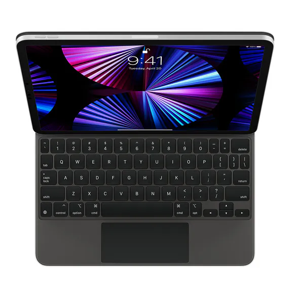 Magic Keyboard یک همراه شگفت انگیز برای iPad Pro 11 اینچی و iPad Air است. این کیبورد دارای تجربه تایپ باور نکردنی، پد لمسی که راه های جدیدی را برای کار با iPadOS باز میکند، درگاه USB-C برای شارژ و محافظت از جلو و پشت می باشد. صفحه کلید جادویی دارای یک طرح پایه شناور است که به شما این امکان را می دهد که iPad Pro و iPad Air را به صورت مغناطیسی وصل کنید و به آرامی آن را با زاویه دید مناسب برای خود تنظیم کنید.