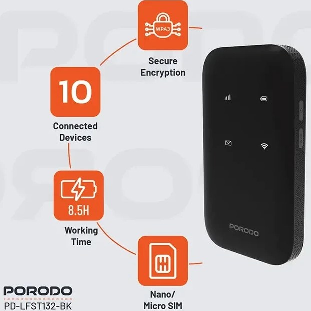 روتر جیبی Porodo مدل LFST132 پشتیبانی از 4G LTE و WiFi 6