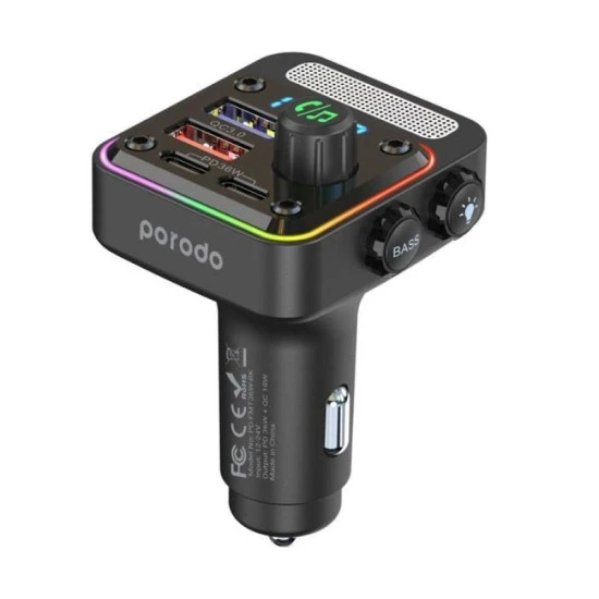 Porodo Quick-Charge FM Car Charger,Dual USB-C & USB-A (PD36W)